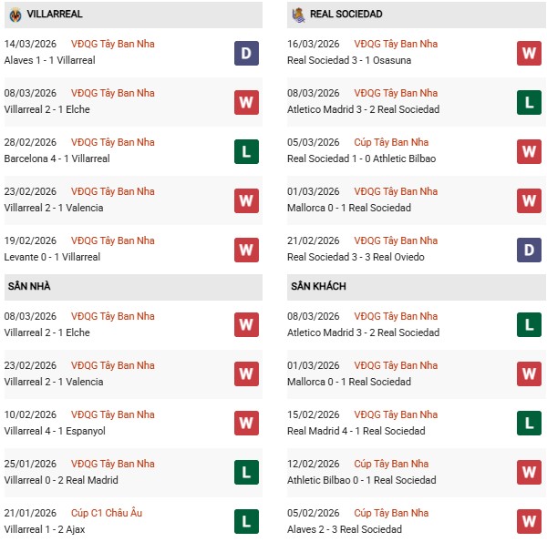 - Trên sân nhà, Villarreal thắng 3, thua 4 trước Sociedad.