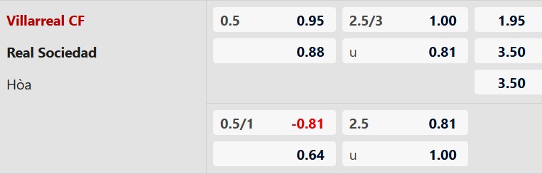 Villarreal chấp 1/2 bàn là mức kèo thể hiện họ được đánh giá nhỉnh hơn nhờ lợi thế sân nhà. Tuy nhiên, với phong độ ổn định và lối chơi khó chịu của Real Sociedad, đây sẽ là trận đấu không dễ dàng cho đội chủ nhà. Sociedad đủ khả năng gây khó khăn và thậm chí có điểm nếu tận dụng tốt cơ hội.