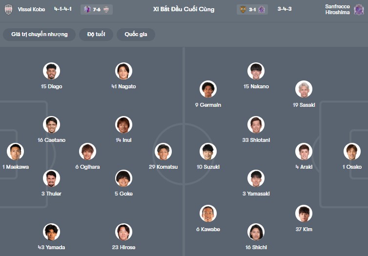 Đội hình dự kiến Vissel Kobe vs Hiroshima: