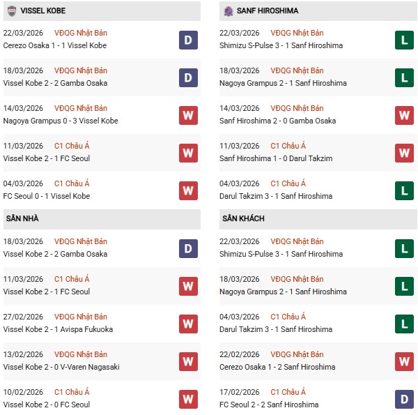 Sanfrecce Hiroshima còn phải phơi áo tận 4 lần sau 5 chuyến viếng thăm gần nhất đến sào huyệt Noevir của đối thủ thuộc khuôn khổ giải VĐQG. Tựu trung lại, Vissel Kobe khó trắng tay trận này, chỉ không rõ là 1 hay 3 điểm mà thôi.