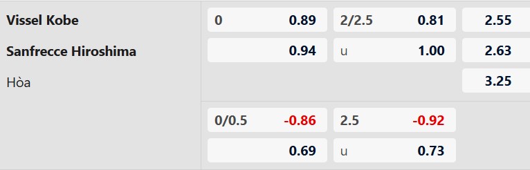 Thông tin tỷ lệ kèo Vissel Kobe vs Hiroshima: