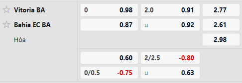 Khá khó hiểu khi kèo hòa được thua xuất hiện ở cặp đấu này dù ở khía cạnh nào, Bahia cũng đang vượt trội toàn diện so với đội chủ nhà Vitoria. 10 lần gần nhất chạm mặt, đội khách thắng 4 trận và 4 lần để đối phương cầm hòa. Trận lượt đi ở mùa bóng năm nay, Bahia trên sân nhà cũng có cho mình thắng lợi khá dễ dàng 2-1. Với bối cảnh Vitoria đang chơi rất tệ, không ngạc nhiên nếu Bahia có thể tiếp tục thu về được thêm một thắng lợi.
