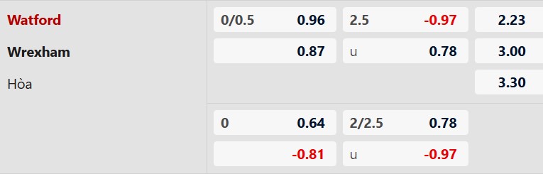 - Watford hòa 2-2 trước Wrexham ở trận lượt đi mùa giải này.