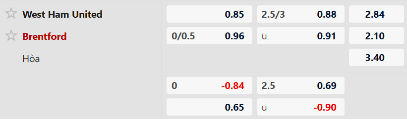 Brentford thắng hiệp 1 theo châu Á: Brentford thắng hiệp 1 theo châu Á ở 5/8 trận sân khách gần nhất. Ngoài ra, họ cũng thắng hiệp 1 theo châu Á ở cả 3 cuộc đụng độ West Ham gần đây nên là sự lựa chọn đáng tin trước giờ nghỉ.