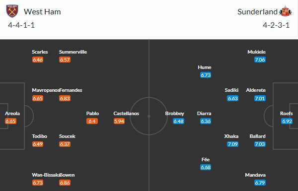 Cả 2 đội ghi bàn: 4/5 trận gần nhất của West Ham có hiện tượng cả 2 đội ghi được bàn thắng. 4/6 trận gần nhất của Sunderland cũng có kịch bản tương tự xảy ra. Hàng thủ của West Ham rất tệ mùa này. Trận này nhiều khả năng sẽ có 2 đội cùng ghi được bàn.