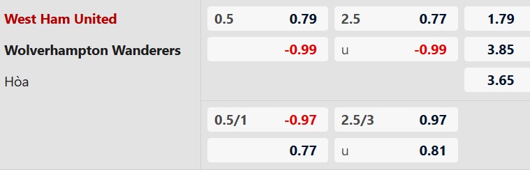 Trong 5 trận đấu gần nhất của West Ham, đã có tổng cộng 13 bàn thắng được ghi (trung bình 2,6 bàn/trận), trong khi con số của Wolves là 14 bàn (trung bình 2,8 bàn/trận). Nhìn vào 5 trận đối đầu gần nhất giữa hai đội, chỉ có tổng cộng 16 bàn thắng được ghi (trung bình 3,2 bàn/trận). Dựa trên số liệu này, khả năng trận đấu có trên 3 bàn thắng là rất cao.