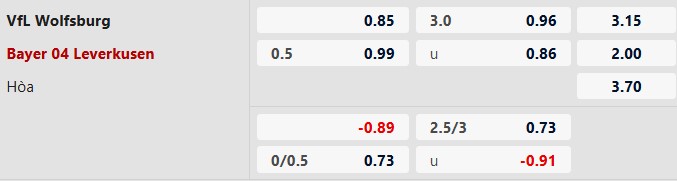Trong 5 trận đấu gần nhất của Wolfsburg, đã có tổng cộng 13 bàn thắng được ghi (trung bình 2,6 bàn/trận), trong khi con số của Bayer Leverkusen là 18 bàn (trung bình 3,6 bàn/trận). Nhìn vào 5 trận đối đầu gần nhất giữa hai đội, chỉ có tổng cộng 12 bàn thắng được ghi (trung bình 2,4 bàn/trận). Dựa trên số liệu này, khả năng trận đấu có dưới 3 bàn thắng là rất cao.