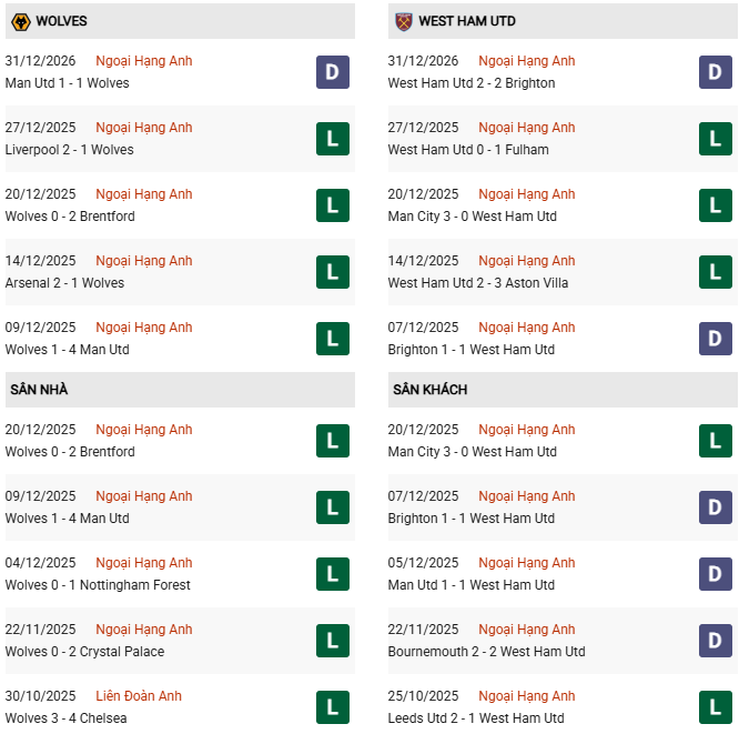 Tuy đã lâu không thắng ở giải Ngoại hạng Anh, song gần đây Wolves cũng đã cho thấy được sự khởi sắc. Nếu cứ đá tốt như những gì vừa thể hiện trước Liverpool và MU, sẽ chẳng bất ngờ nếu Bầy sói kiếm được trọn vẹn 3 điểm từ tay West Ham đang khủng hoảng.