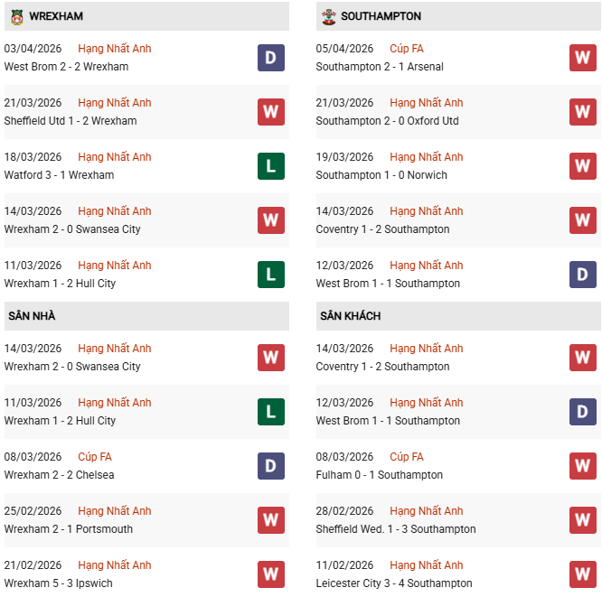 Wrexham bước vào vòng 41 Championship với áp lực rất lớn khi đang đứng thứ 6 cùng 64 điểm sau 40 trận, vị trí cuối cùng trong nhóm play-off thăng hạng. Khoảng cách với chính Southampton phía sau chỉ là 1 điểm khiến cuộc đối đầu trực tiếp này mang ý nghĩa như một “trận cầu 6 điểm”. Wrexham vừa cầm hòa West Brom 2-2 trên sân khách, cho thấy tinh thần thi đấu khá lì lợm trong giai đoạn then chốt của mùa giải.