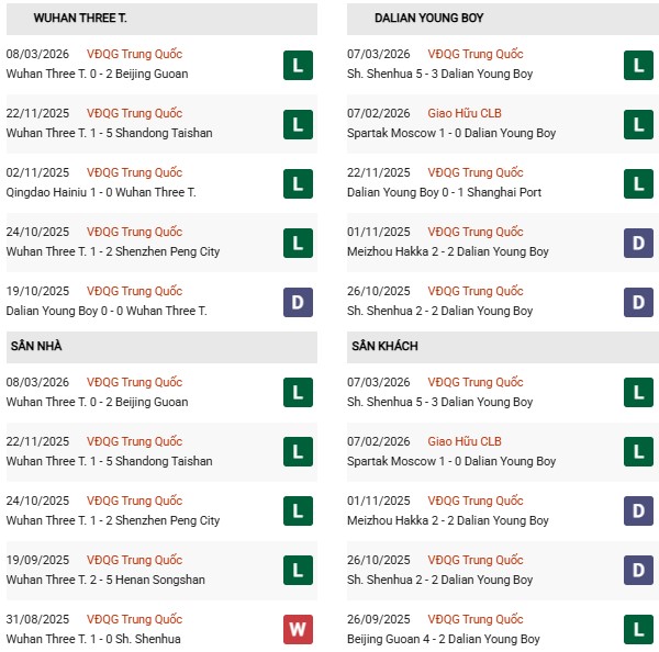 Dalian Yingbo còn chơi thứ bóng đá "sạch" khi là 1/7 đội không bị trừ điểm lúc bước vào mùa giải mới 2026 còn Wuhan Three Towns thuộc phe "đối lập": nhận án phạt trừ 5 điểm do những cáo buộc liên quan đến dàn xếp tỷ số, hối lộ hay tham nhũng.