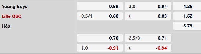 Dù phải làm khách nhưng với vị thế của mình, Lille vẫn được đánh giá cao hơn cùng tỷ lệ chấp 3/4 bàn. Trước phong độ thăng hoa của Lille, Young Boys nhiều khả năng sẽ trở thành vị chủ nhà tội nghiệp chứng kiến cơn thịnh nộ tiếp theo của đội khách.
