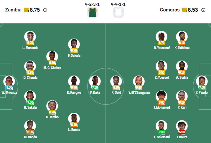 Bước vào lượt trận thứ hai vòng bảng gặp Comoros, các cầu thủ Zambia biết rằng một chiến thắng sẽ giúp họ có vị thế tốt để tiến xa hơn vòng đấu bảng của giải đấu năm nay. Tuy nhiên, họ đã không thắng trong 3 lần đối đầu trước đó với Comoros trong hơn 2 năm qua, với thành tích 1 hòa và để thua 2.